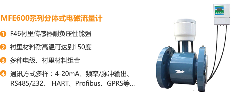 針對供水管網的特點,我們推薦使用MFE600系列分體式電磁流量計: