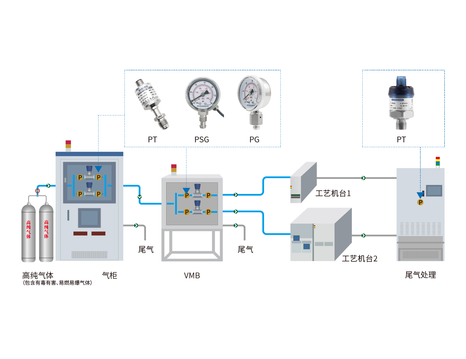 高純氣體是晶圓制造、光伏電池板生產(chǎn)、顯示面板加工過程中非常重要的原材料,參與整個產(chǎn)品生產(chǎn)加工過程。氣體種類繁多,純度高,部分氣體有毒有害、易燃易爆。麥克傳感提供此行業(yè)應(yīng)用的壓力監(jiān)測解決方案。