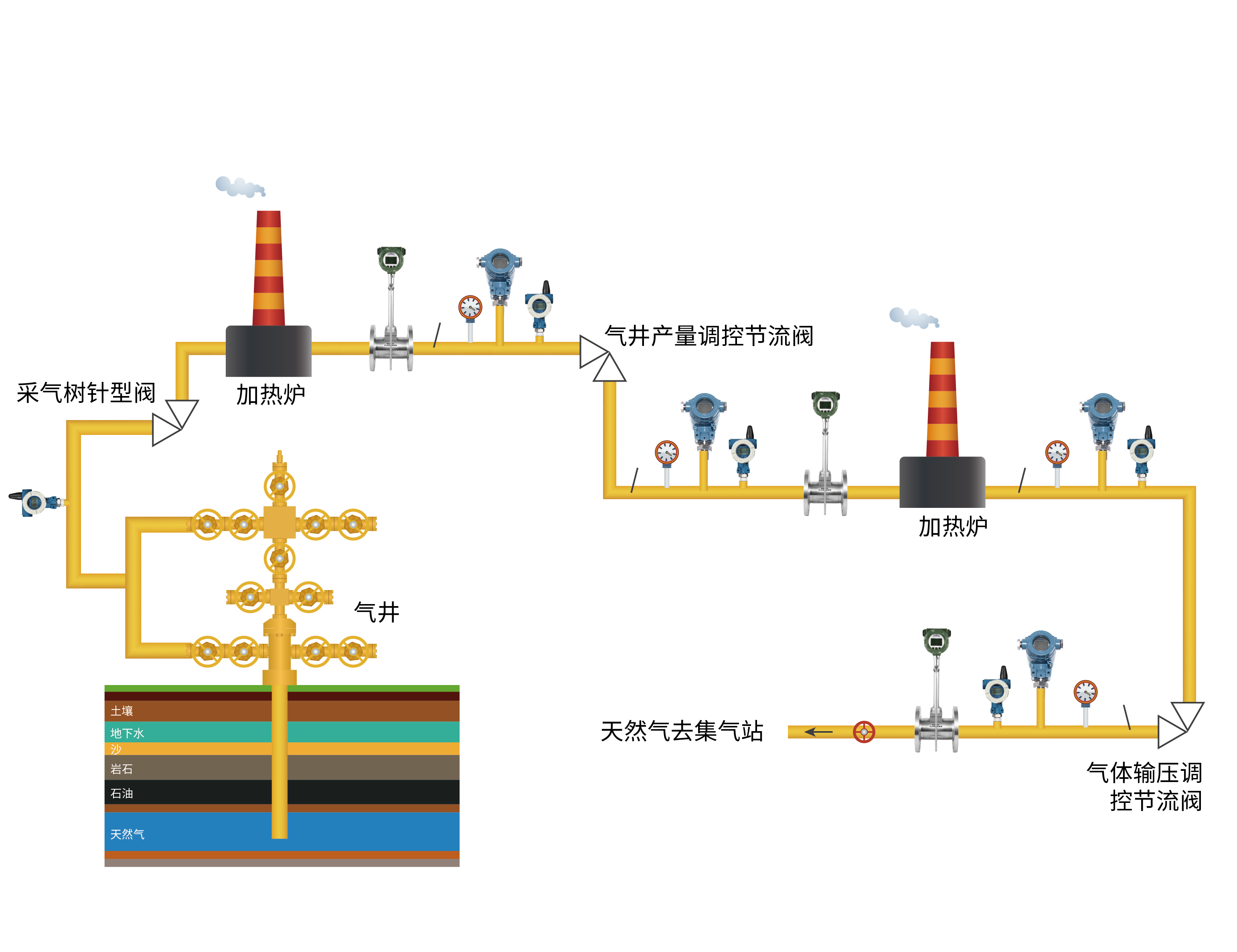 把分散的油井所生產的油、氣集中起來,經過處理和初加工,符合標準后進行外輸。在工藝流程中需要包含油氣分離、原油脫水、天然氣凈化等多個步驟,因此需要各類儀表對生產參數進行計量。