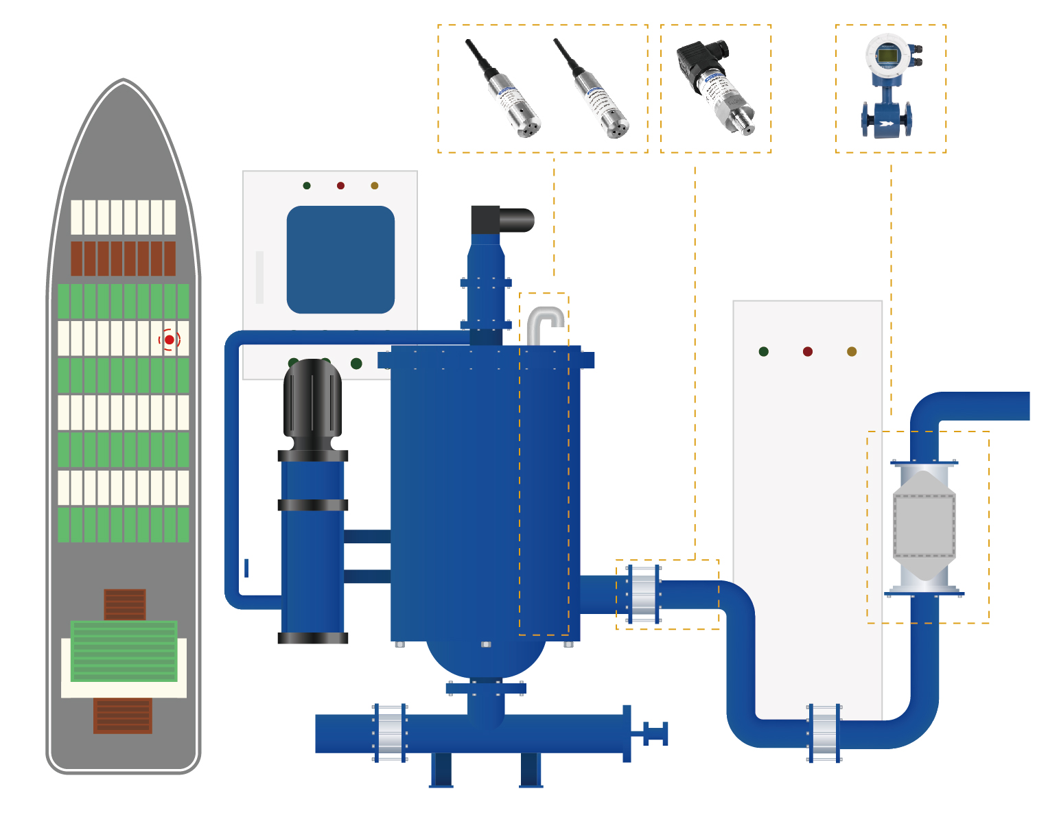 查看詳情在船舶水循環(huán)冷卻系統(tǒng)安裝壓力變送器、溫度變送器、電磁流量計,保證中央冷卻器的換熱效率,實現(xiàn)最大程度的節(jié)能及海水流量的優(yōu)化控制。